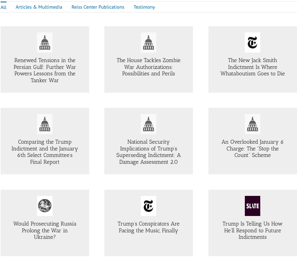 The Reiss Center on Law and Security’s leadership and affiliated experts have published a wide range of writing on the most pressing national security issues of the day. Our output ranges from short-form pieces, to reports and issue briefs, to books and edited volumes. See below for a full list of recent and past publications.